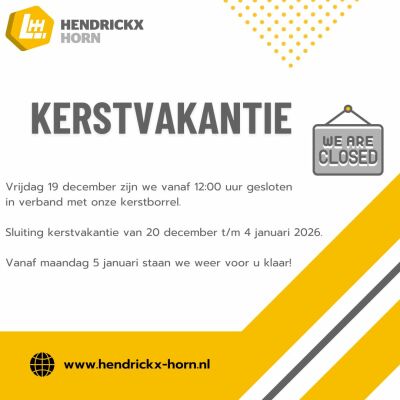 Sluiting kerstvakantie: Zaterdag 20 december t/m Zondag 4 januari 2026.